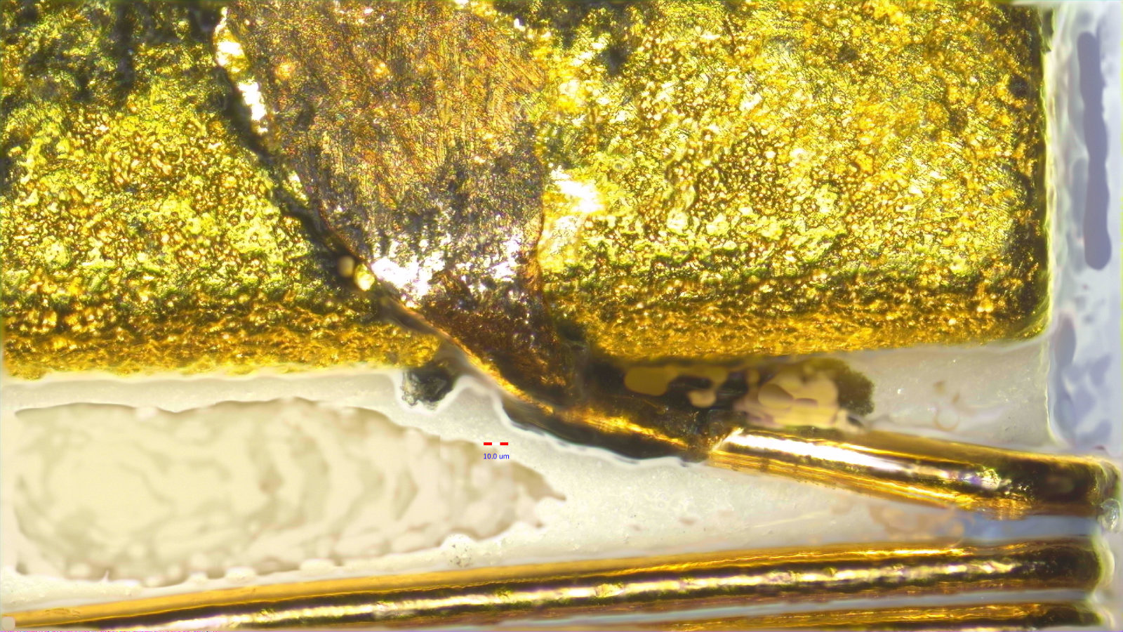 LED燈引腳瑕疵的檢測(cè),采用是高端研究級(jí)偏光金相顯微鏡及最新軟...