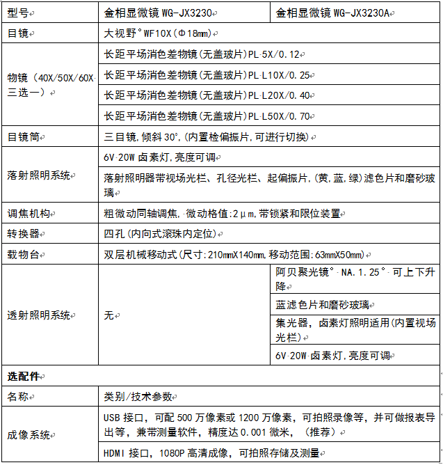 金相顯微鏡WG-JX3230/3230A類別:正置金相顯微鏡